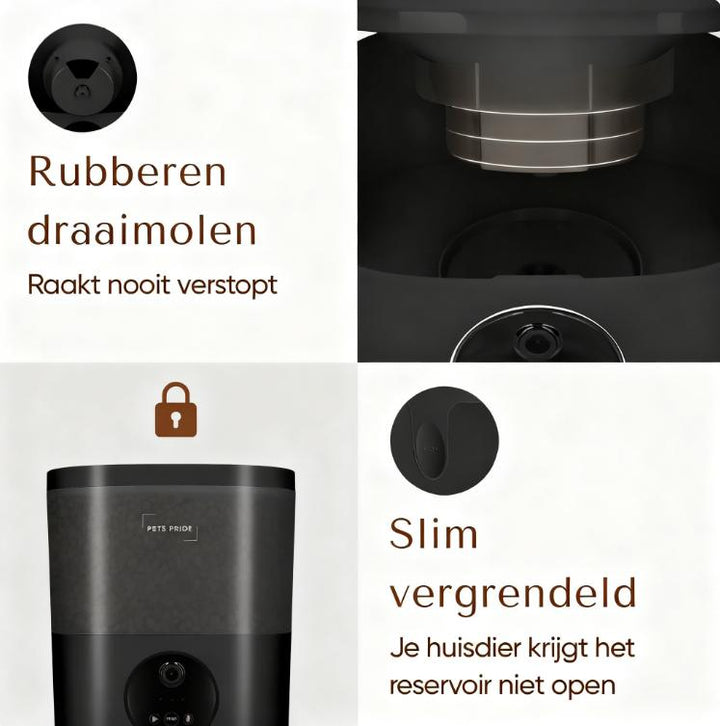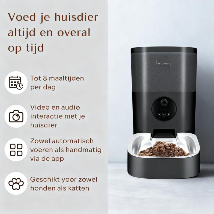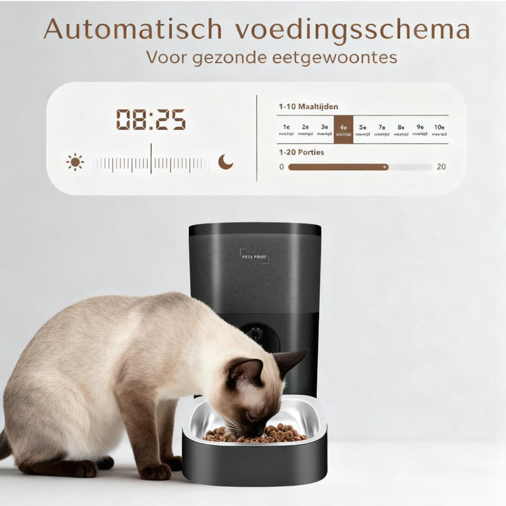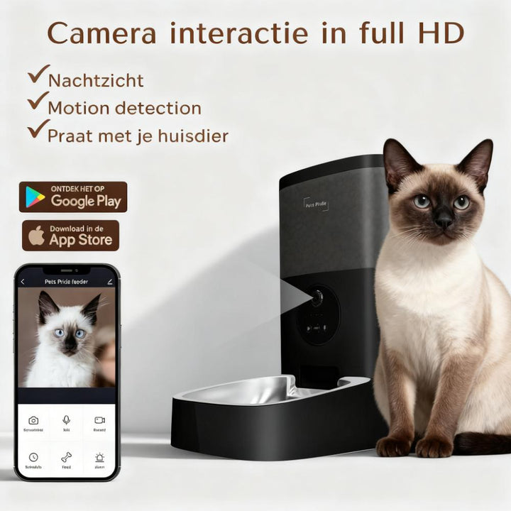With this automatic feeder, you no longer have to worry about feeding your cat or dog on time anymore ! It's especially suitable for when you can't get home on time (such as unexpected situations). Thanks to its premium quality, customizable automatic feeding schedules, and smart app control via your mobile phone, you can rest assured that your pet is well taken care of at all times. You can program 20 portions per meal and arrange 1 to 8 meals per day. Each portion contains 7 to 9 grams of kibble. Thanks to the built-in 1080p Full HD camera and microphone, your pet won't feel abandoned when you're away, and you can always remotely watch, talk, and listen. It offers peace of mind when leaving home !