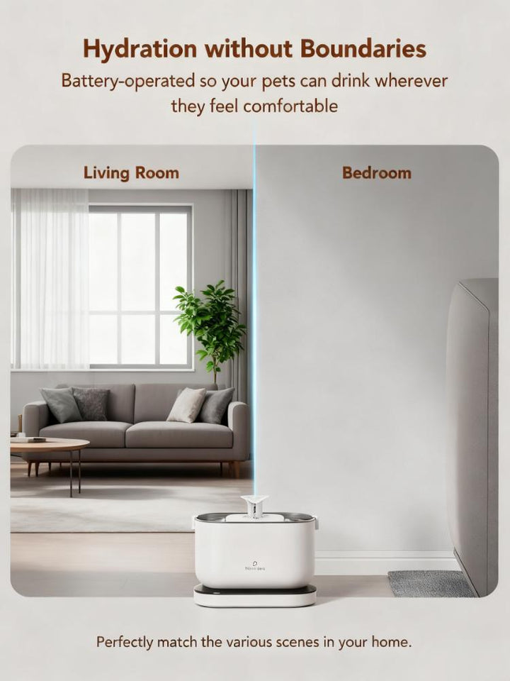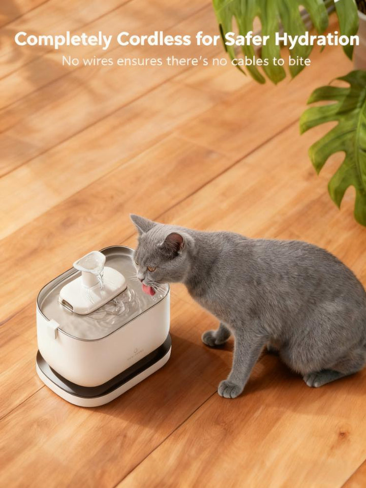 Equipped with a powerful 5000mAh built-in rechargeable battery, it continuously delivers fresh water to your pets even during power outages or while traveling, ensuring they stay properly hydrated.